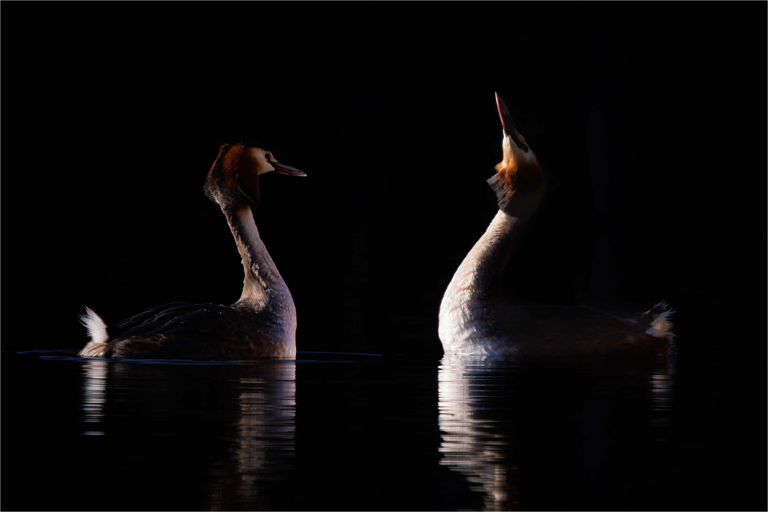 Denna vårmorgon spelade Skäggdoppingarna i ett fantastiskt morgonljus nära mig där jag låg på bryggan med hunden Fia. Ett fantastiskt spel med otroliga rörelser. Jag tröttnar aldrig på att titta på deras spelande.