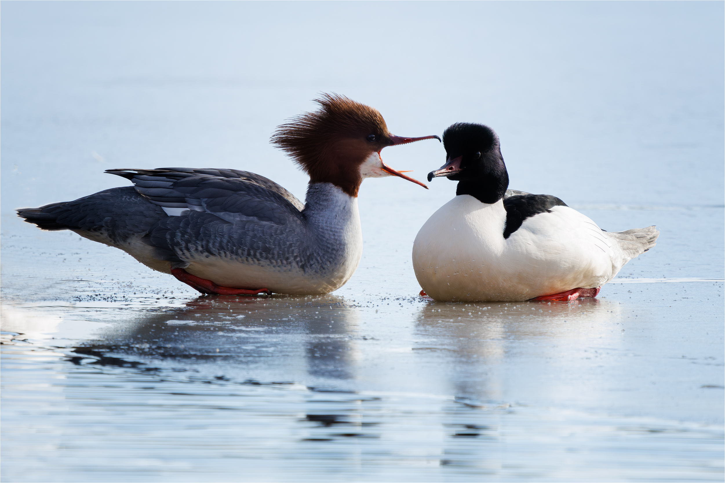 Endast en liten av sjön var isfri denna vår när storskrakarna återkom från vintervistelsen. Tyckte nästan det såg ut som om honan skällde ut hanen :)